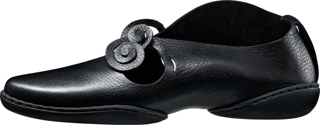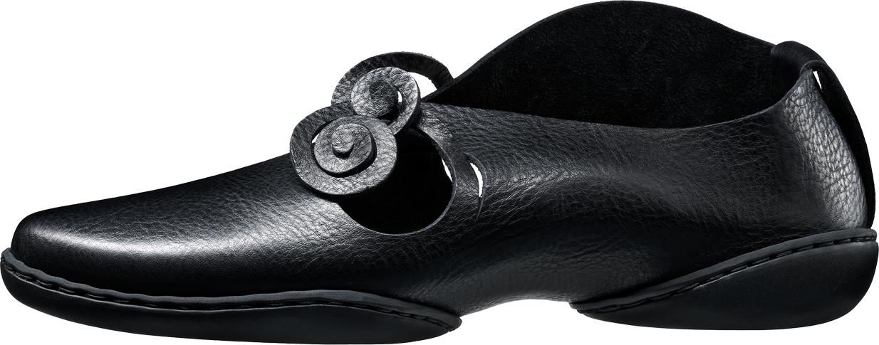 Die beiden seitlichen Aussparungen sind spiralförmig so eingeschnitten, dass sich die Senkel aus dem Material selbst heraus bilden.