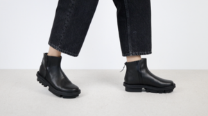 Die vertikalen Seiteneinsätze aus kontrastierendem, glänzenderem Leder erzeugen ein subtiles Zusammenspiel der Texturen – ein dezentes und zugleich elegantes Detail.