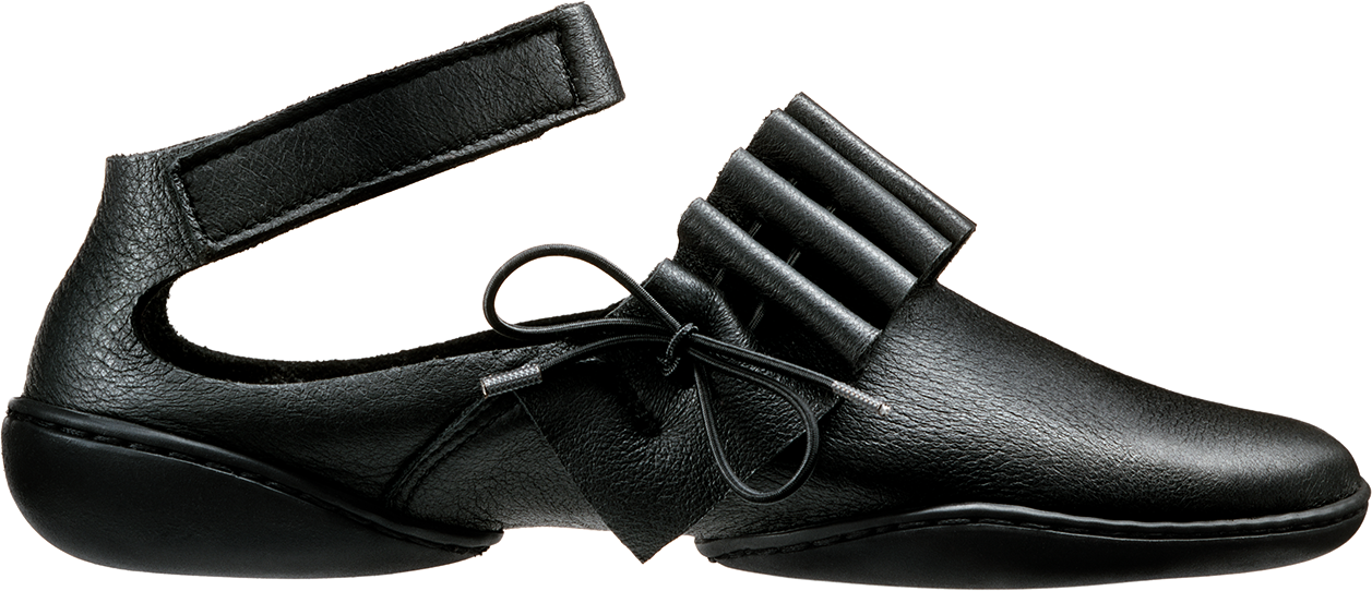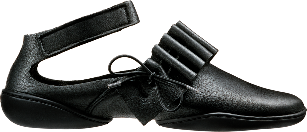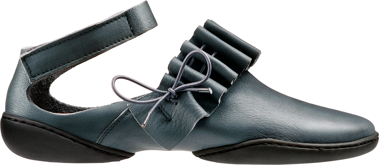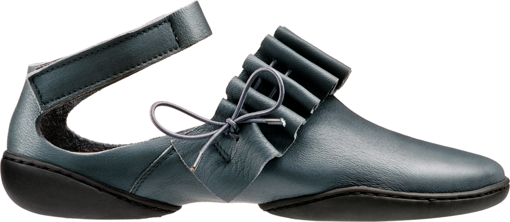 Das Plisseeband über dem Spann ist schmückende Verzierung. Gleichzeitig gibt dessen elastischer Senkel zusätzlich zum Knöchelriemchen Halt.