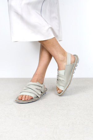Die Unisex-Sandale mit weichem Leder über dem Spann und Fersenriemen wird gehalten durch eine Klettfläche, auf der in jeder beliebigen Positionierung mehrere Riemen angebracht werden können.
