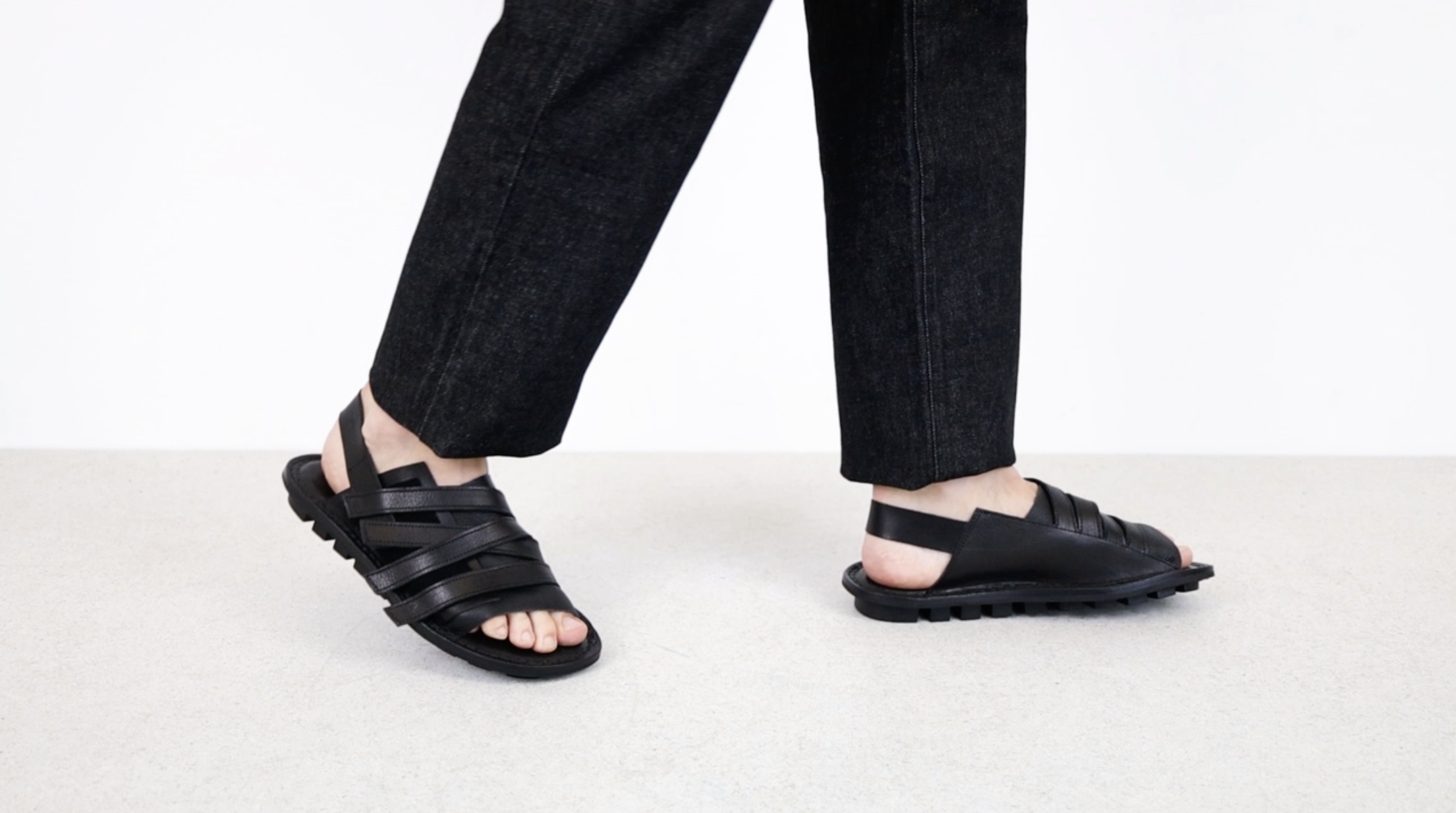 Die Unisex-Sandale mit weichem Leder über dem Spann und Fersenriemen wird gehalten durch eine Klettfläche, auf der in jeder beliebigen Positionierung mehrere Riemen angebracht werden können.