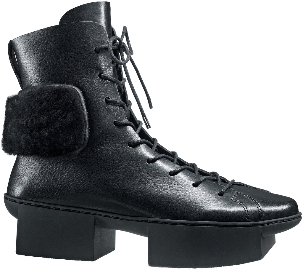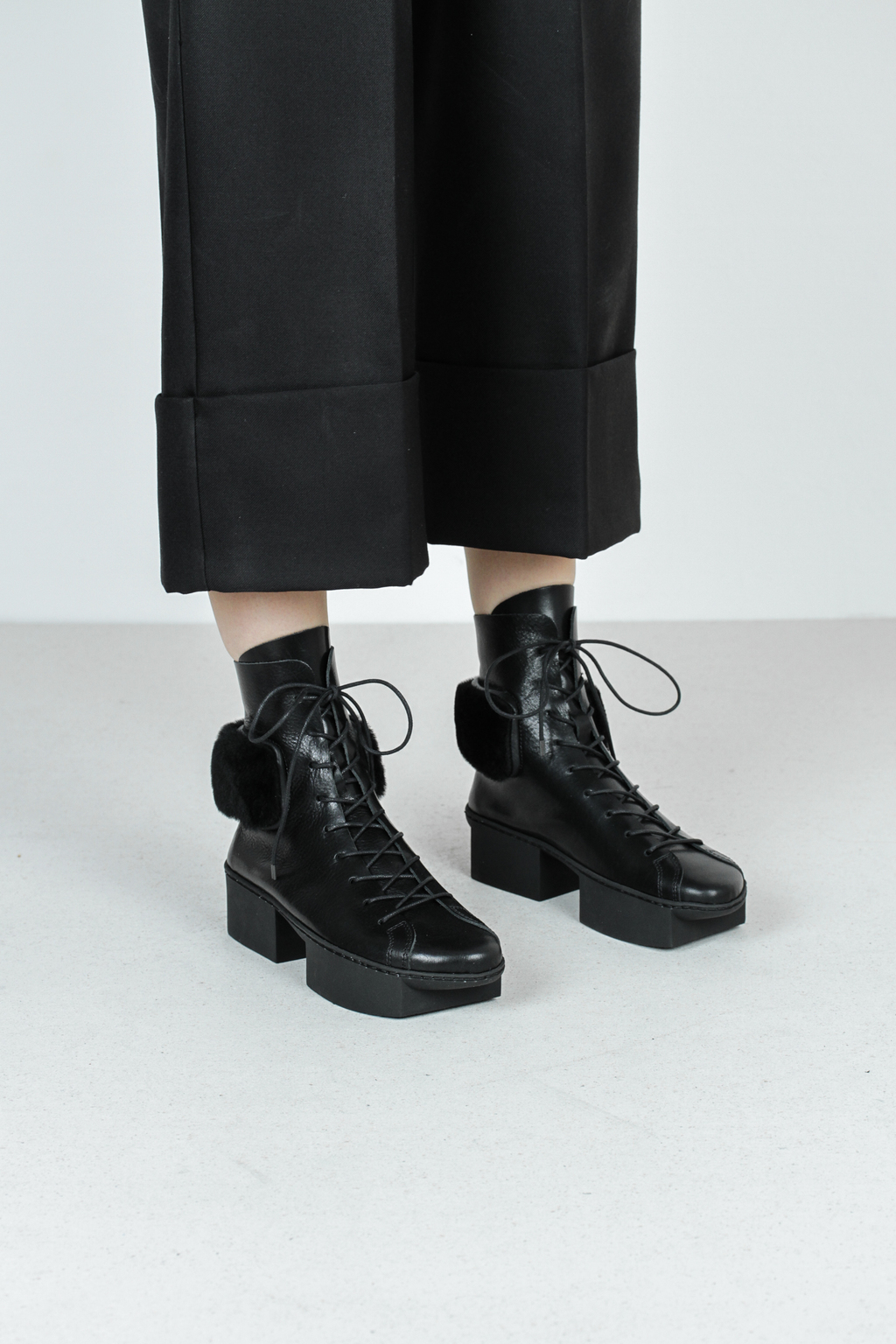 Unisex-Schnürstiefelette mit Fellbesatz, welcher hinten rund um den Knöchel verläuft.