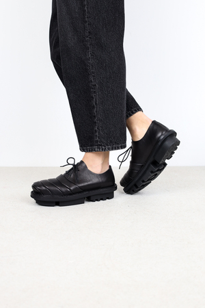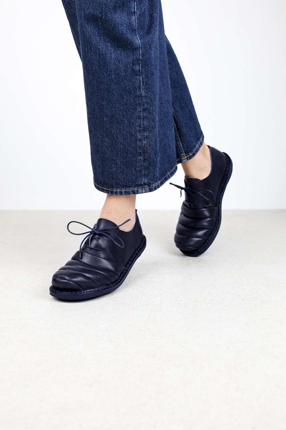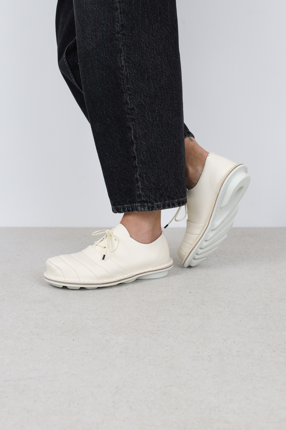 Die feingearbeitete, fliessende Überzeichnung der Kappenpartie gibt diesem Unisex-Schnürschuh eine besondere Silhouette.