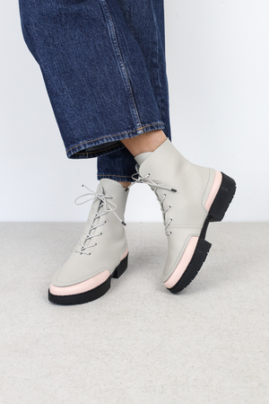 Unisex-Schnürstiefel mit verschachteltem Design und Steppnähten, die das Zusammenspiel der äußeren Schicht umrahmen.