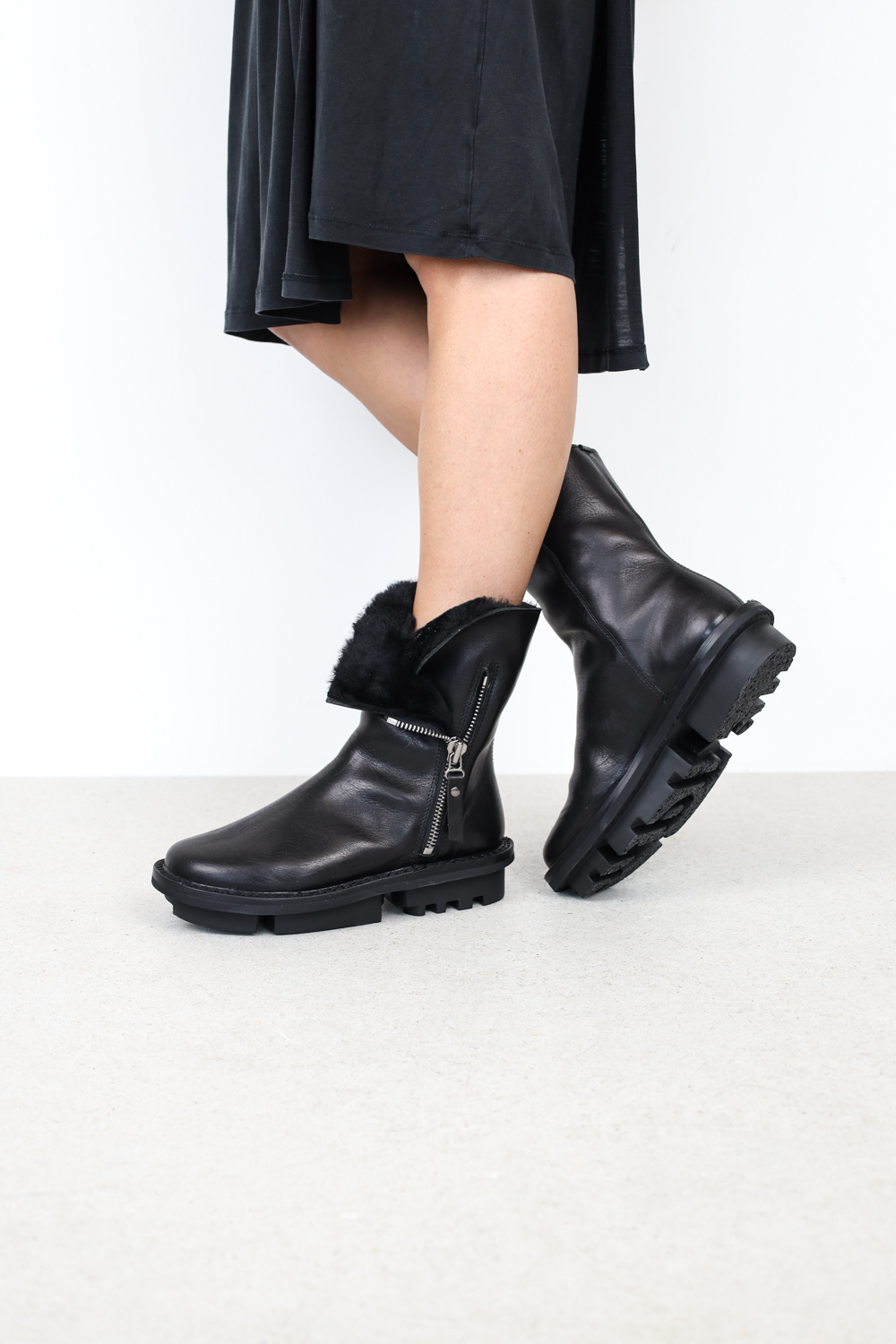 Unisex-Stiefelette mit Metallreißverschluss außen. Dank des mit Oberleder gefütterten Schafts und des extra breiten Untertritts lässt sich der Schaft auch dekorativ umschlagen.