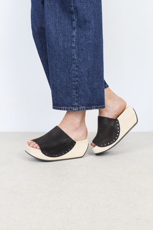Optisch reduzierte Sandale mit nur einem gewalkten Schaftteil ohne jede Naht.