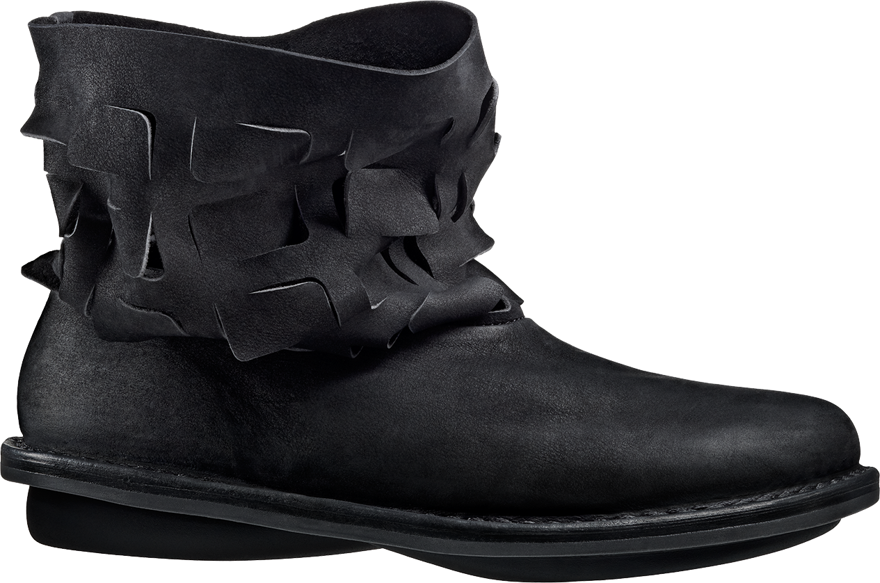 Der obere Teil des Schafts ist mehrreihig rechtwinkelig eingeschnitten und wirkt daher auch schön in »mse«-Ledern mit kontrastierender Schnittkante.