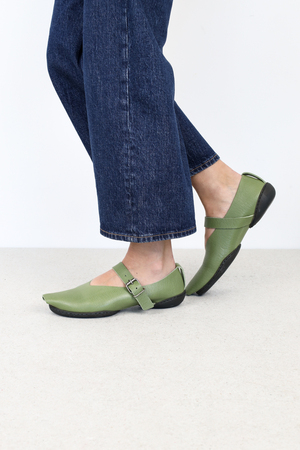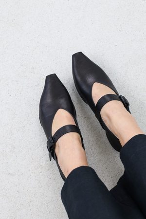 Tief ausgeschnittener Ballerina mit einer neuen, leicht offenen, nach vorne verlängerten Spitze.