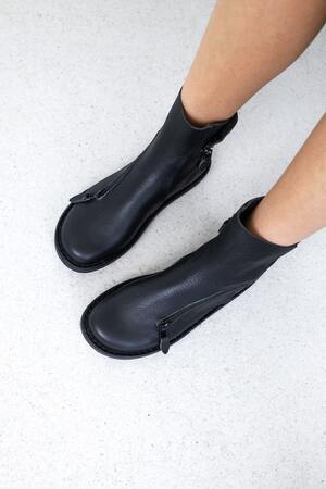 Weiche Stiefelette mit einem Reißverschluss, der spielerisch vom Ballen kommend um die Ferse herum geführt wird und je nach Wetterlage von beiden Enden geöffnet werden kann.