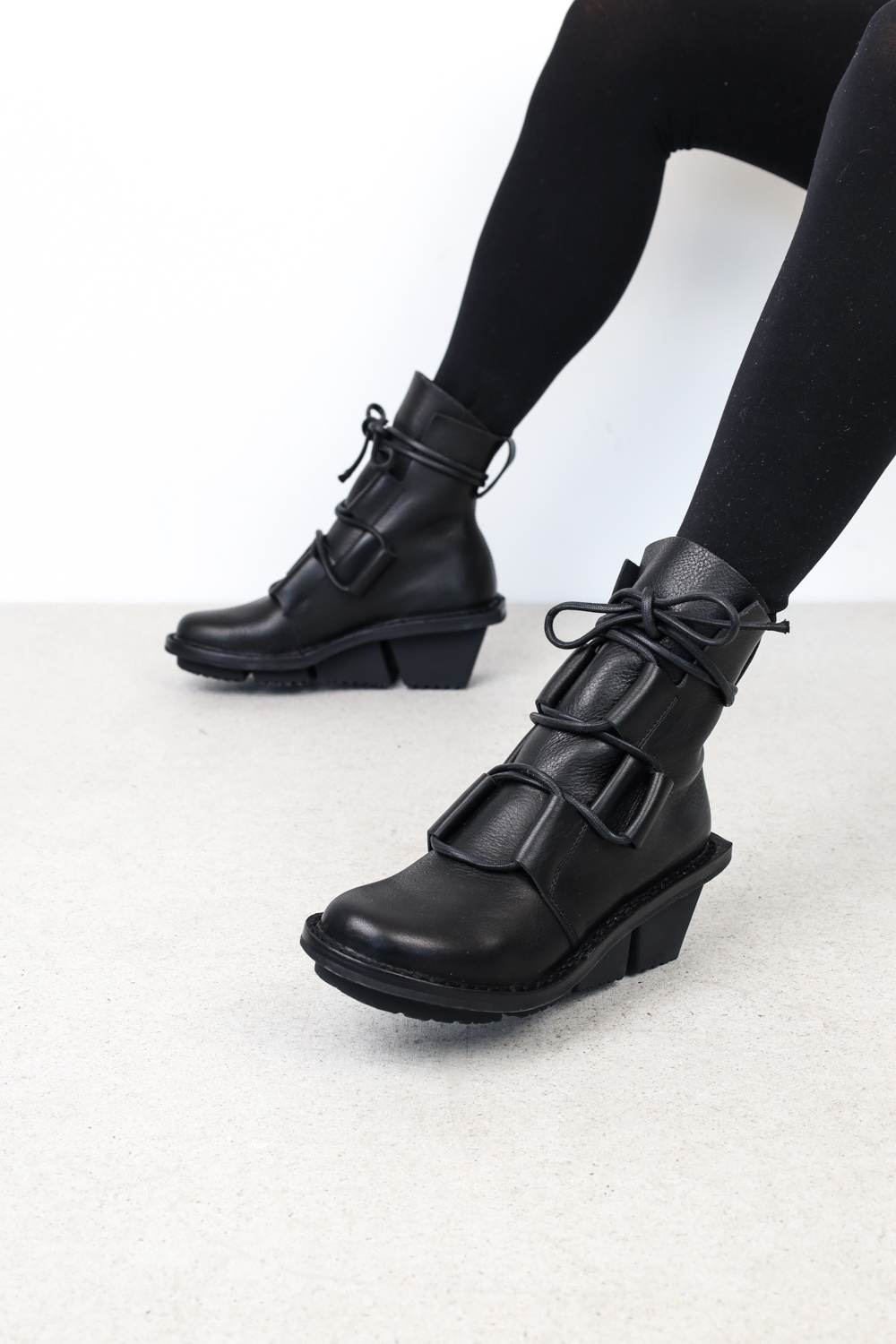 Schnürstiefelette mit extra dickem Senkel und breiten Schlaufen.