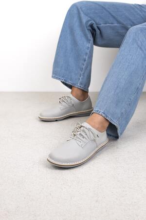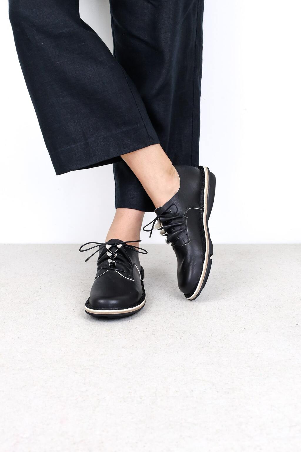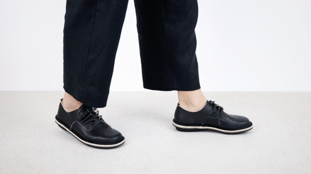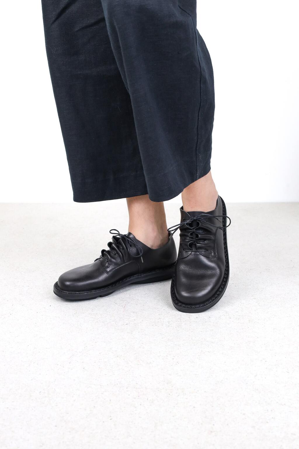 Das Schnürelement dieses klassischen Derby ist in fliessende Wellen gelegt.
