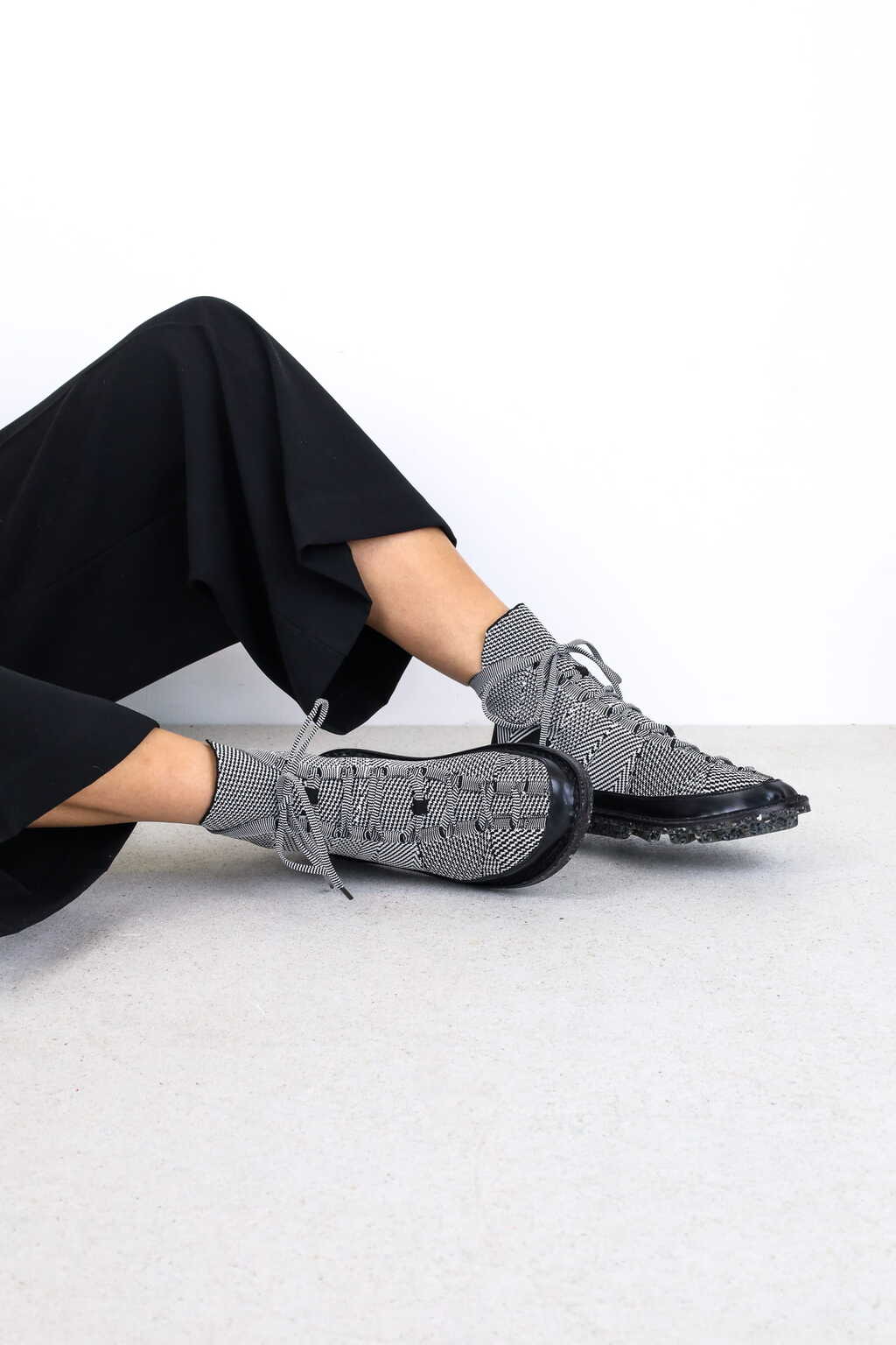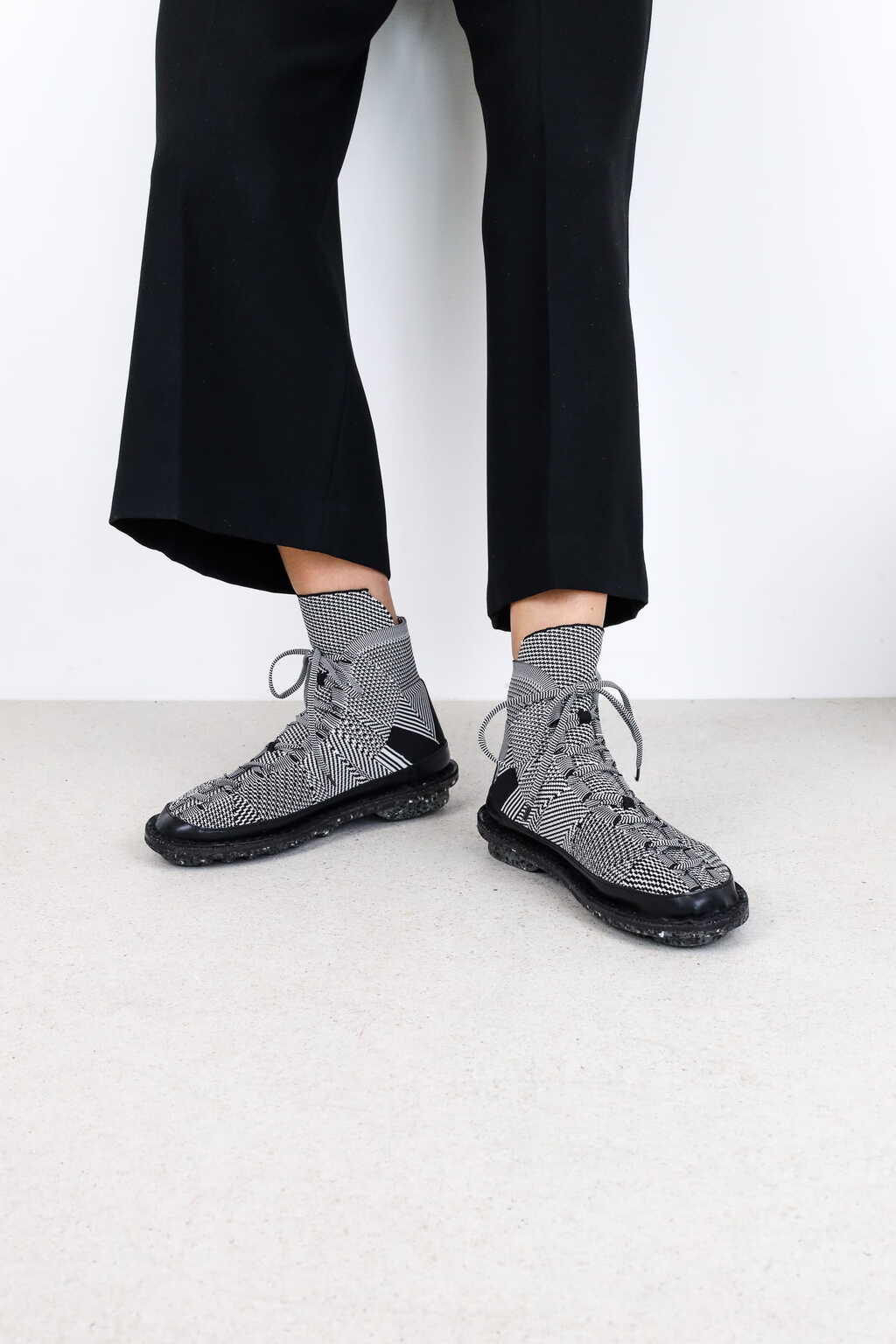 Das zweite Modell in unserer neuen Tradition des zirkulären Strickens ist ein knöchelhoher Schnürsneaker.