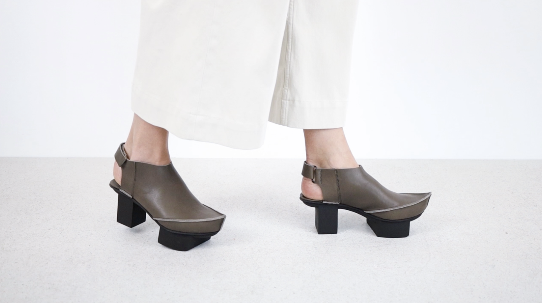 Eine gotische Spitze ist enganliegend bis zum Knöchel gearbeitet und wird mit einem Klettverschluss- Riemen um die Ferse geschlossen.