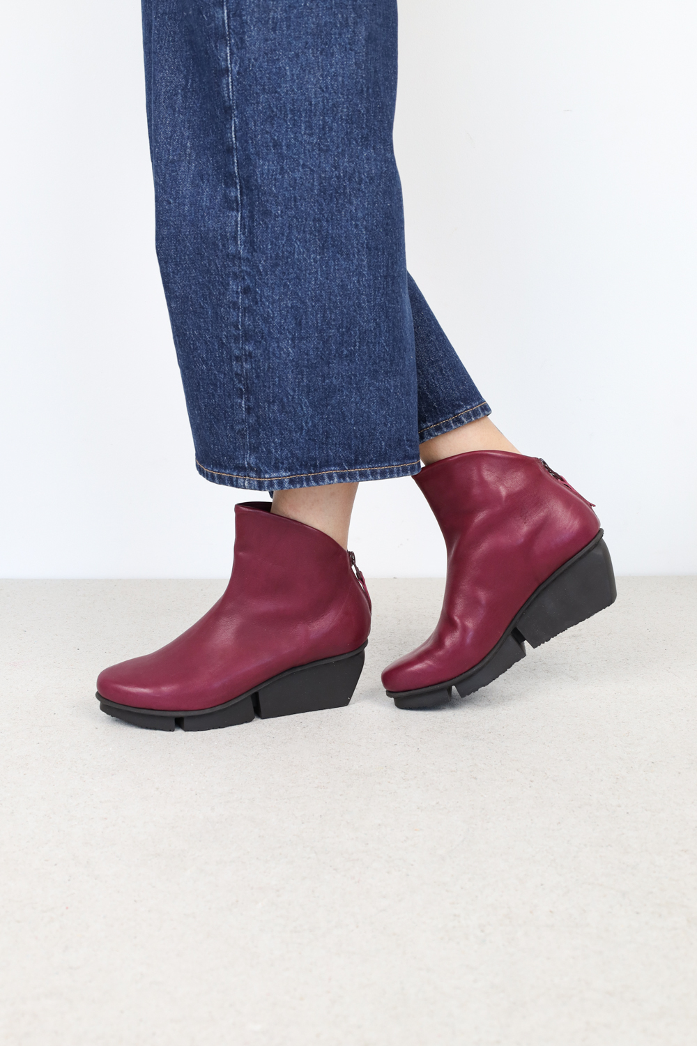 Minimalistische, auf das Wesentliche reduzierte Stiefelette aus nur einem Schaftteil ganz ohne Nähte und mit kurzem Reißverschluss an der Ferse.