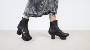 Dynamischer Halbstiefel mit einer Kreuzbandage mit Klettverschluss, die auch schlanken Füßen sicheren Halt gibt.