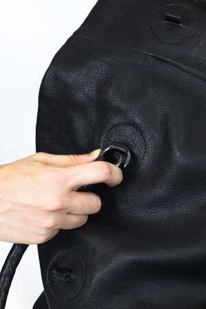 Beweglichen Griffe, die mit Karabinerringen befestigt werden, machen diese geräumige Tasche wandelbar und vielseitig.