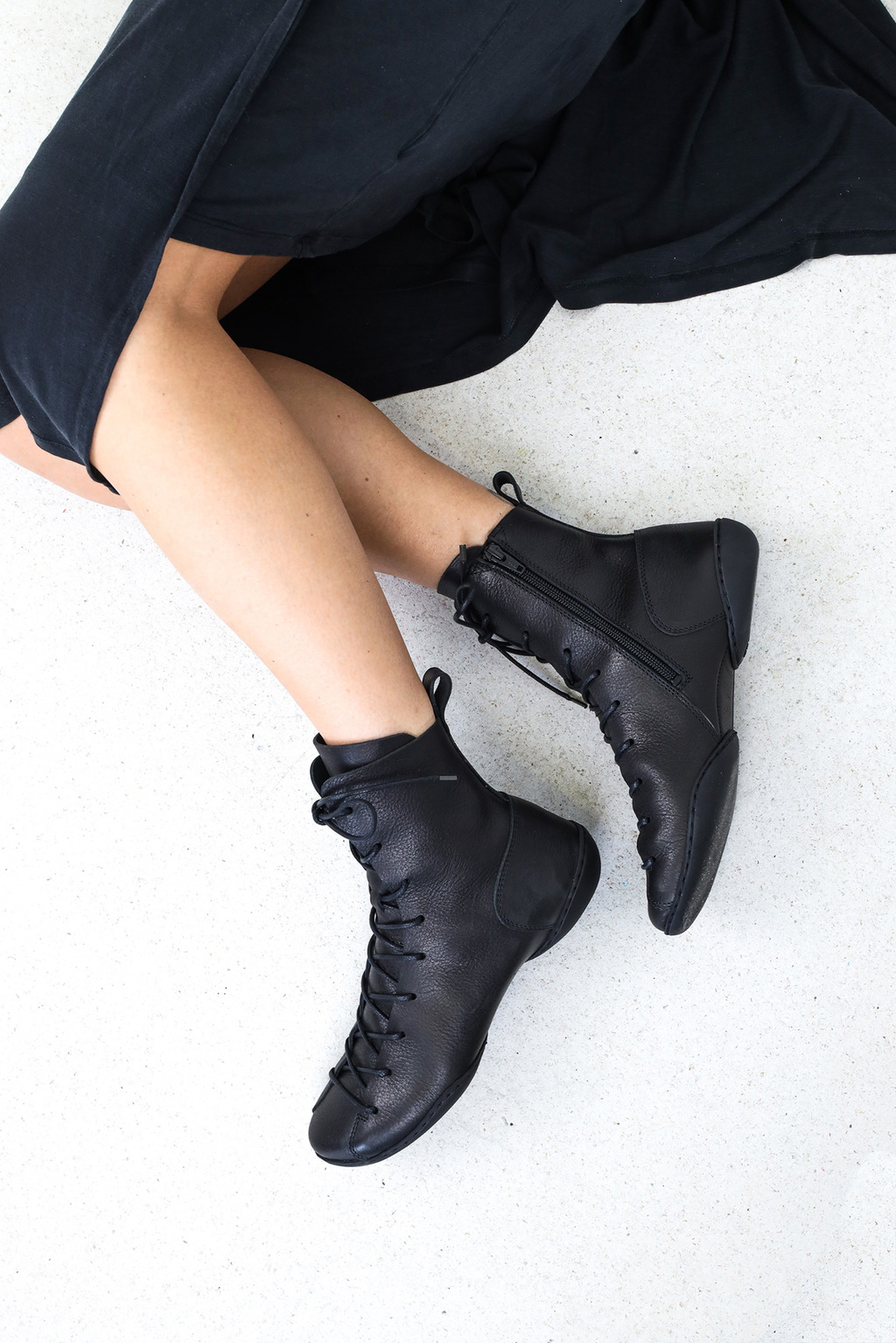 Entwurf nach dem Vorbild klassischer Boxerstiefel. Das Damenmodell ist etwas höher als sein männliches Pendant.