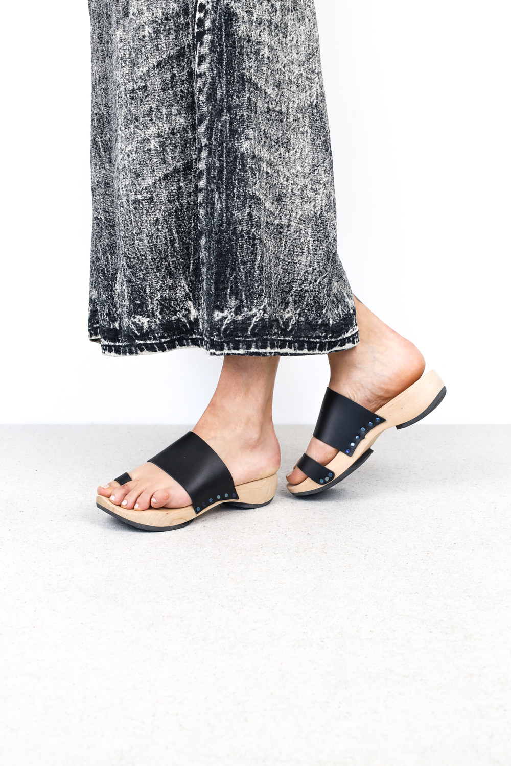 Einer der ersten Trippenschuhe mit einem abgerundeten Absatz für ein angenehmes Laufgefühl mit Stoßdämpfung.