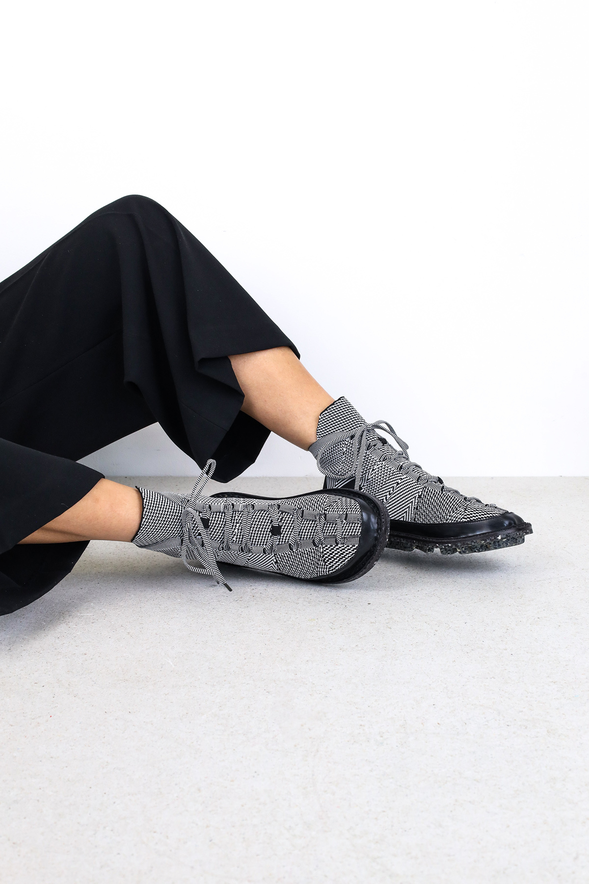 Sowohl die Gummisohlen als auch die gestrickten Schuhoberteile sind recycelt und recycelbar. Auf der Suche nach noch stärker zirkulären Materialien haben wir festgestellt, dass die interessantesten Entwicklungen derzeit bei Garnherstellern zu finden sind.