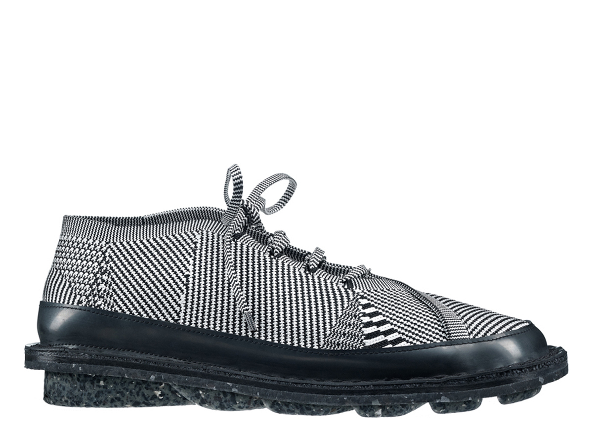 Das schwarz-weiße Muster hebt die dreidimensionale Schnittentwicklung des Gestricks zusätzlich hervor.