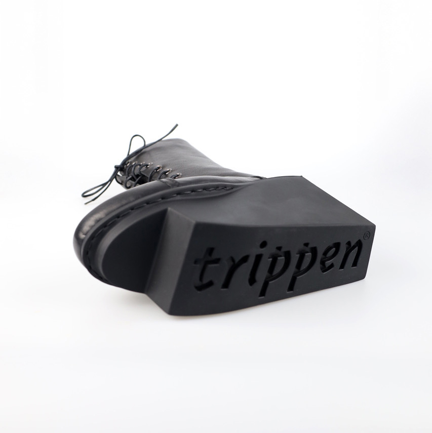 veredelt durch Trippens ikonische 10 cm hohe Geisha-Plateausohle – ein kühnes Statement für Stärke, Substanz und Design.
